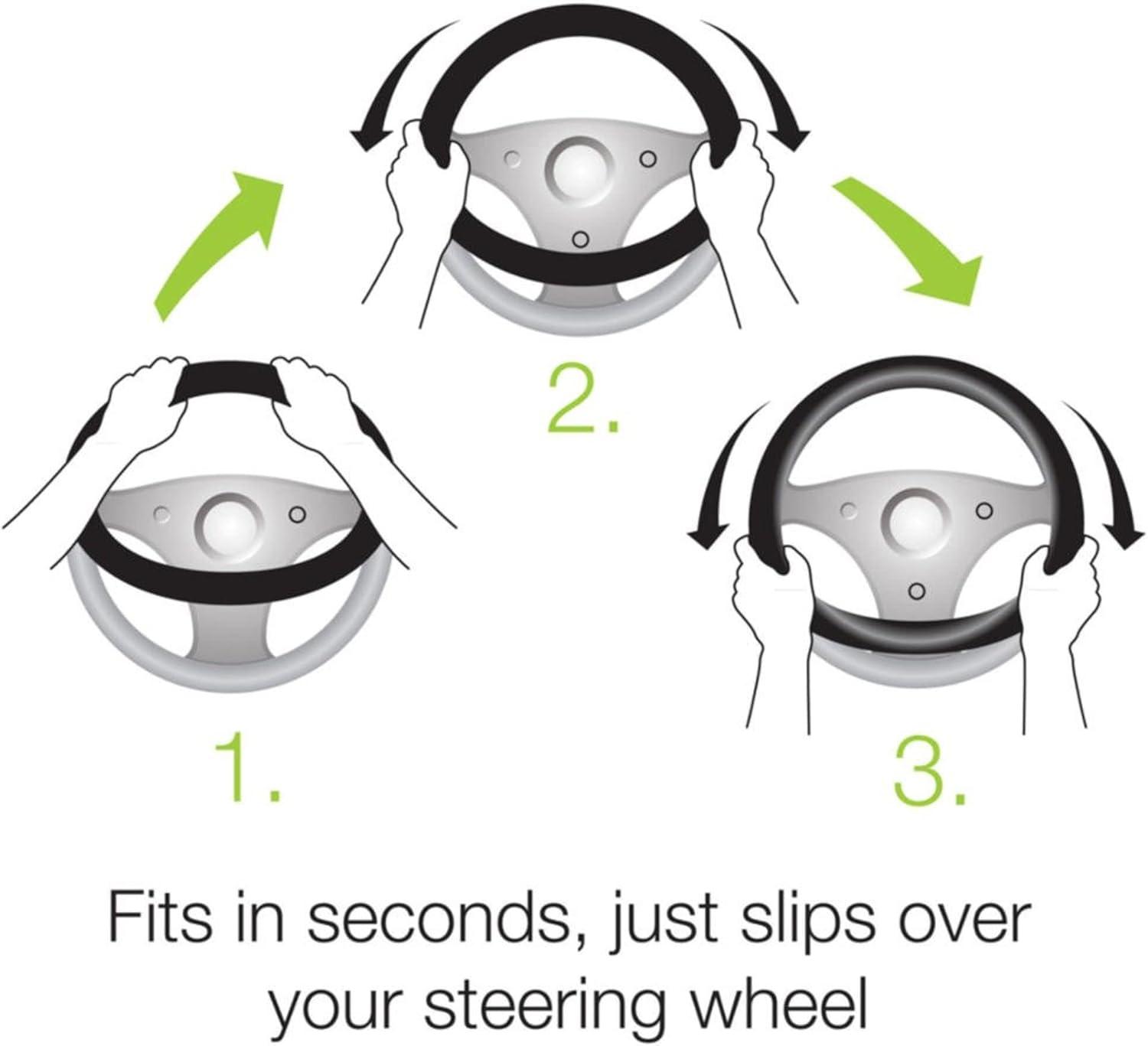 Universal Steering Wheel Cover – Made to fit steering wheels with a diameter between 14. 5 to 15.5 inches. Our durable steering wheel cover provides protection against fading, cracking and peeling from exposure to sun and extreme weather.
