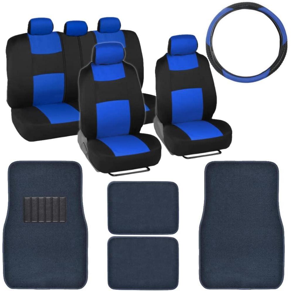 Get up to 50% off on BDK Front & Rear Combo Set of 4 Piece Auto Carpet Floor Mats with PolyPro Car Seat Covers & Steering Wheel Cover, Fits Most for Car Truck Van SUV, Colorful Design Interior Car Accessories(Blue) styles during our spring sale event.