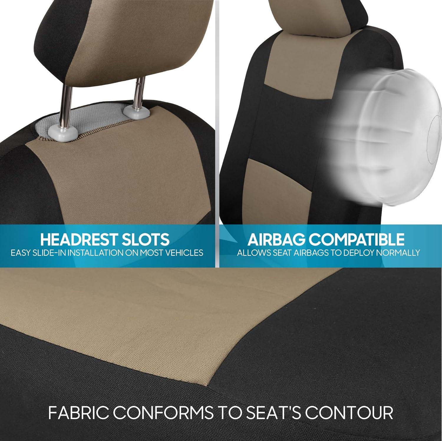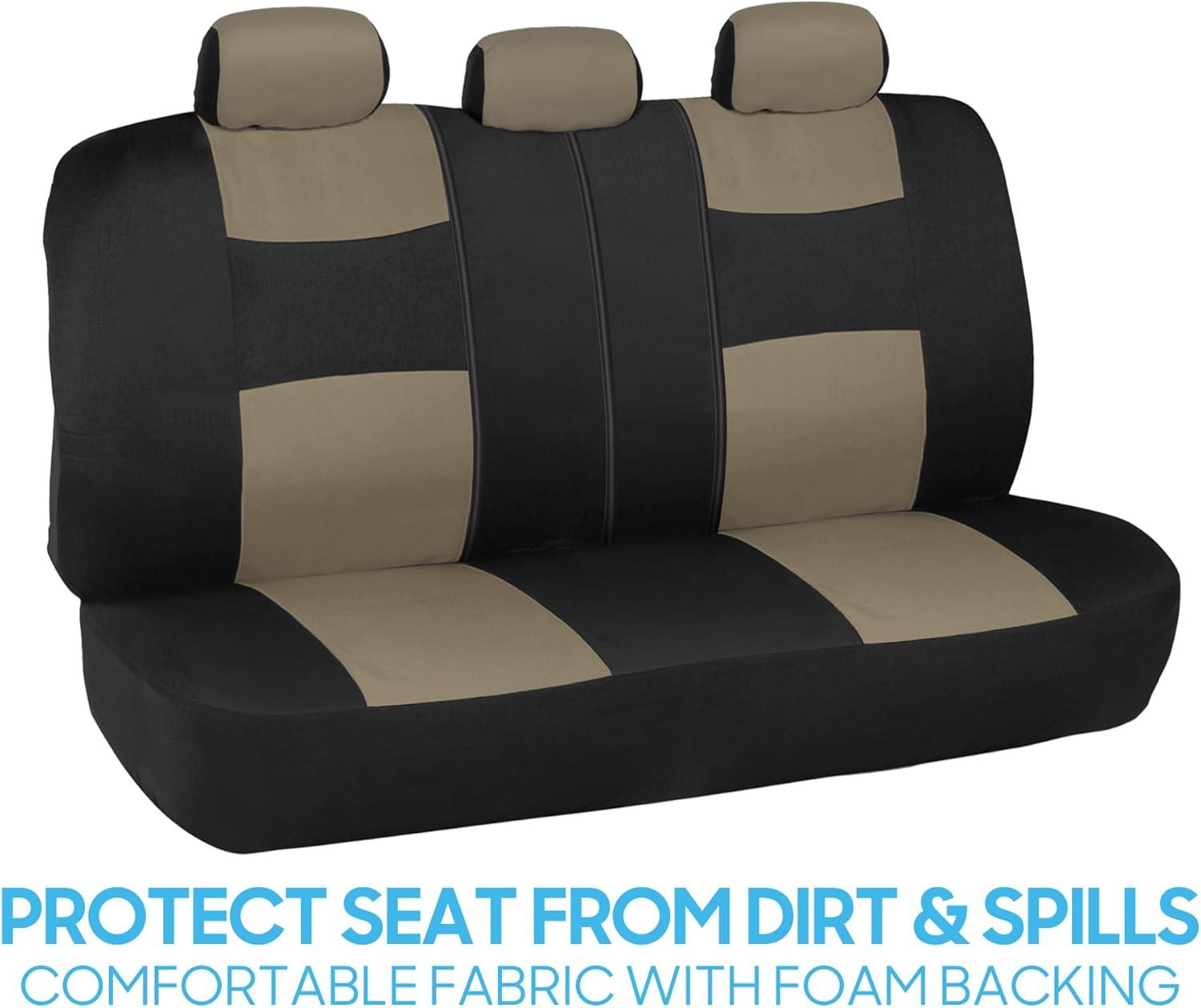 BDK PolyPro Car Seat Covers Full Set in Blue Gray on Black, Front and Rear Split Bench Seat Covers for Cars, Easy to Install Car Seats Cover Set and Accessories for Auto Trucks Van SUV – Blue Gray(Beige)