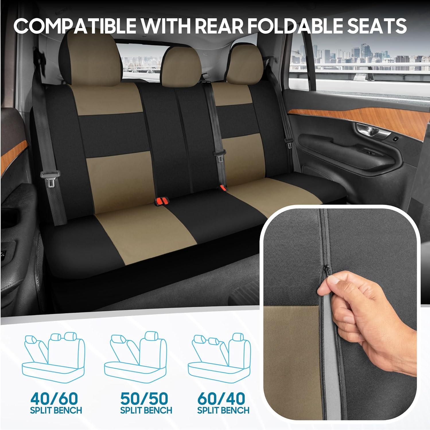 BREATHABLE MATERIALS FOR ALL-SEASON CONFORT: Designed with comfort in mind, our seat covers are made from premium, breathable materials to keep you cool and comfortable year-round. Unlike leather seat covers that can overheat in summer or feel icy in winter, our high-quality poly outer layer promotes airflow and ventilation—making even long drives more enjoyable.