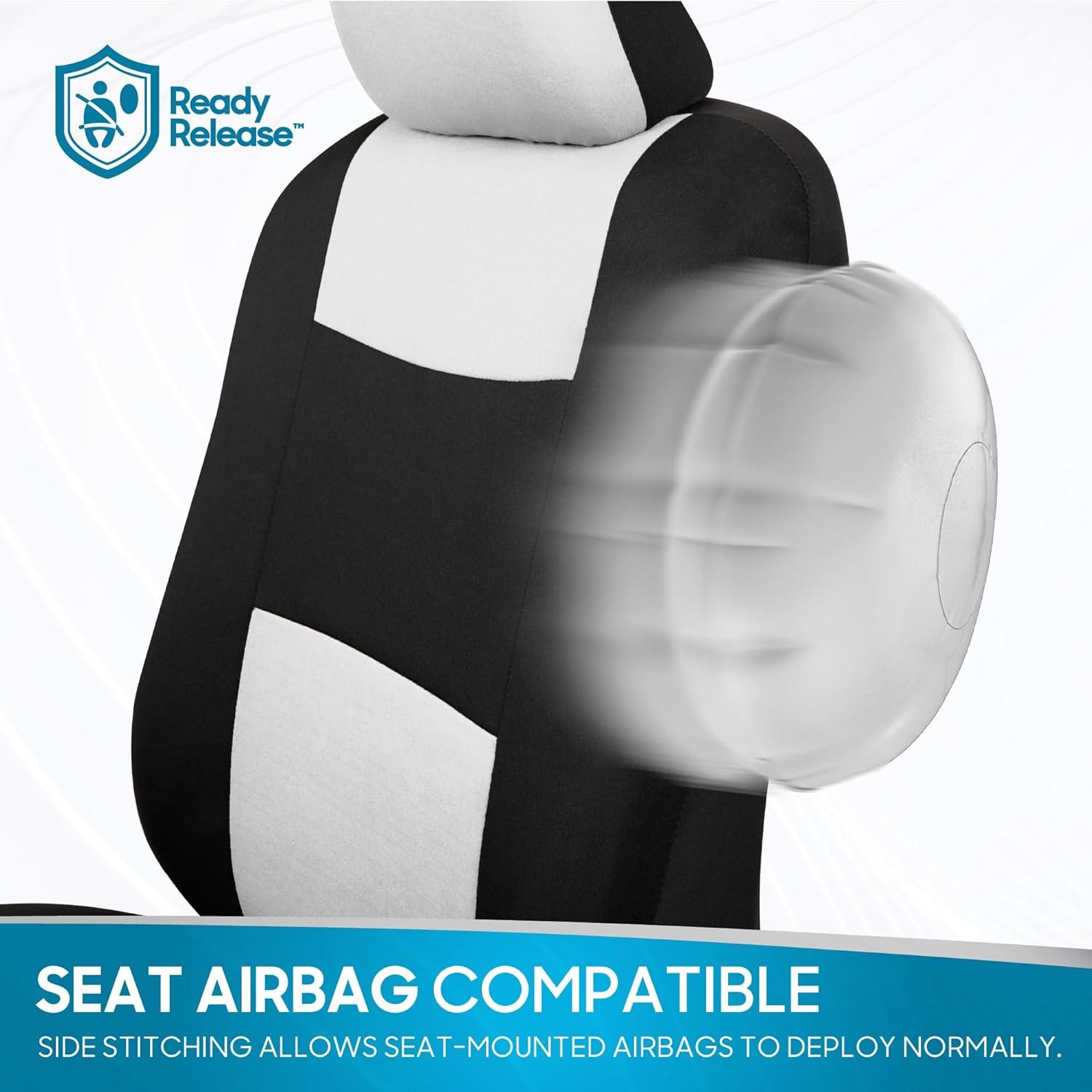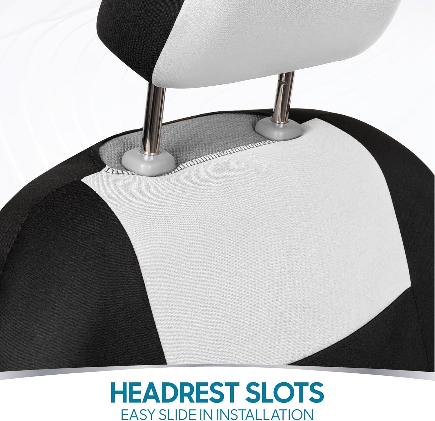 UNIVERSAL FIT FOR MOST AUTOS: Our seat covers are designed to provide a snug and stylish fit for the majority of cars, trucks, vans, and SUVs. They are compatible with most vehicles that feature adjustable or removable headrests. Please note: these seat covers are not compatible with seats that have molded (non-adjustable) headrests, integrated seatbelts, or built-in armrests on the front seats.
