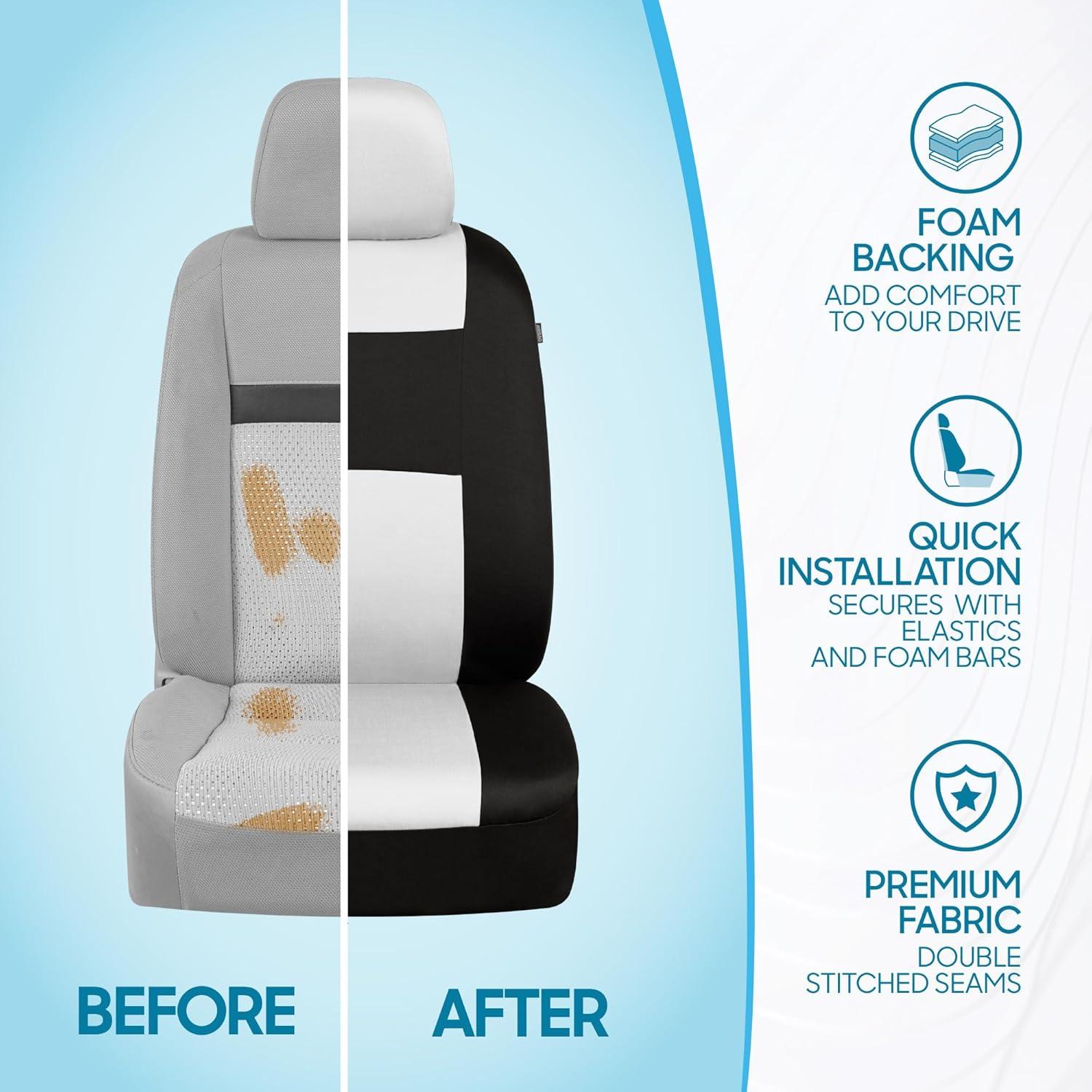 PROTECTS AGAINST WEAR & TEAR: Whether your car is brand new or just new to you, these durable seat covers are the perfect way to keep your interior looking fresh. They offer reliable protection against dirt, spills, and daily wear—helping preserve your seats and maintain your vehicle’s value.