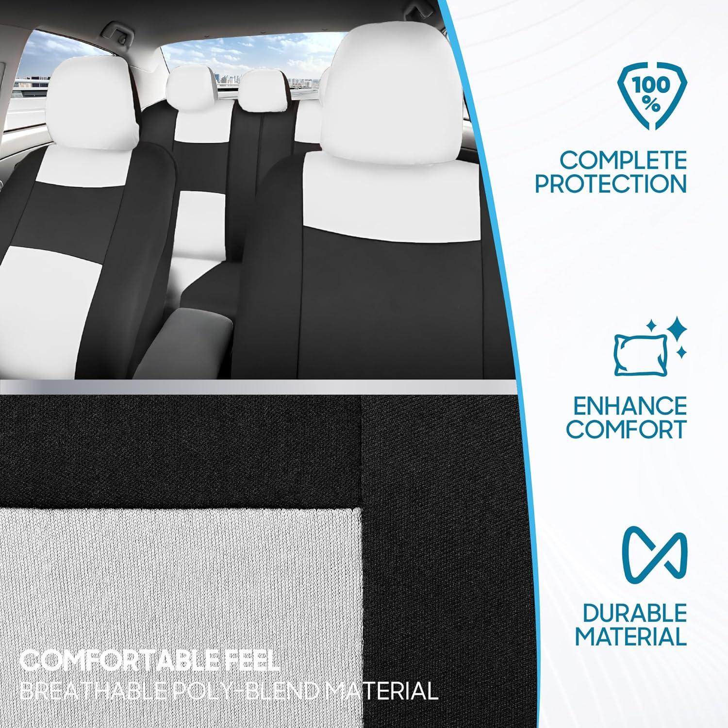 STYLISH MODERN DESIGN: Refresh your ride with a sleek, contemporary look. Our full set of seat covers features a bold two-tone design with detailed stitching, adding a pop of color and personality to your interior. It’s an instant upgrade that turns heads and transforms your car’s vibe from ordinary to eye-catching.
