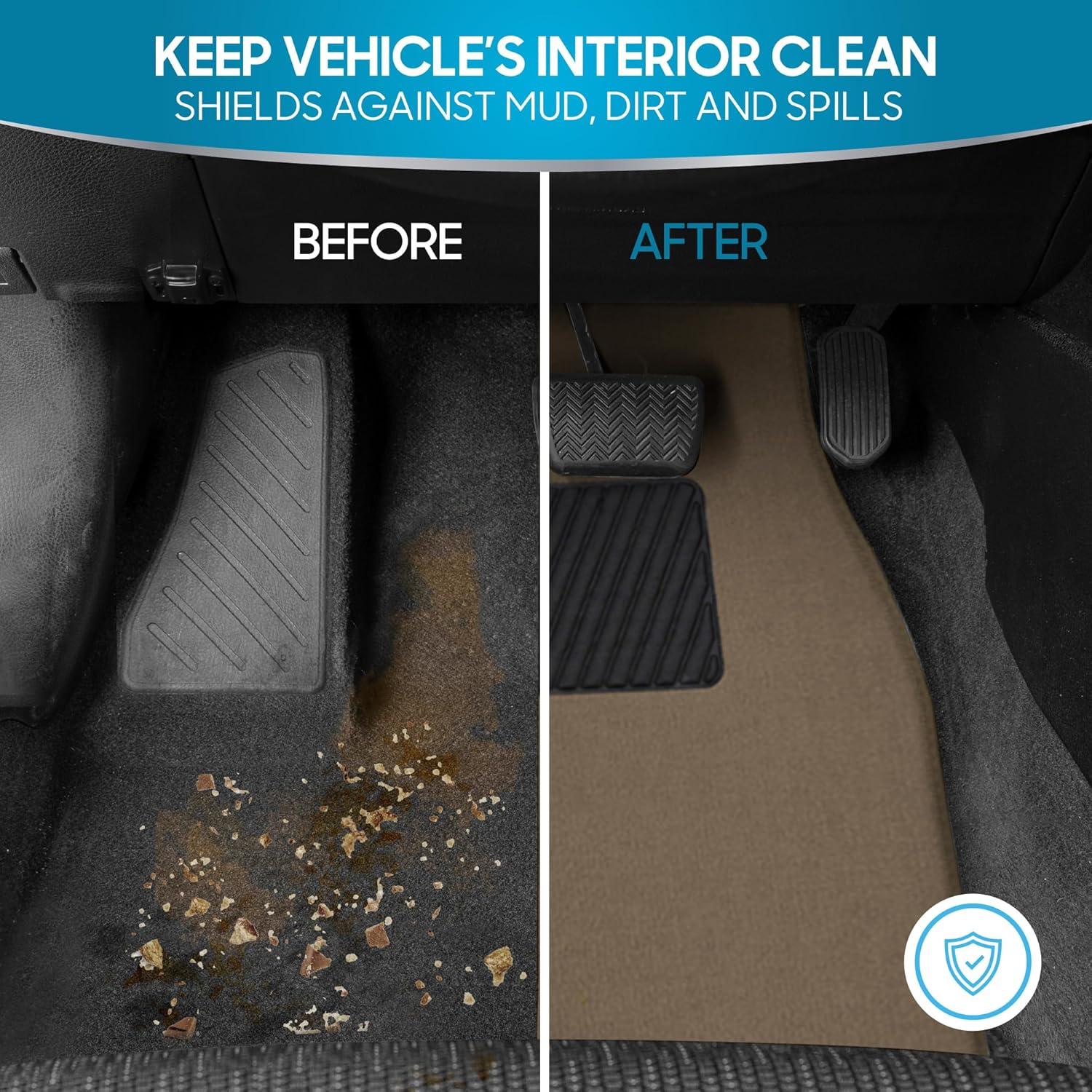 DESIGNED TO FIT MOST AUTOMOBILES & EASY TO CLEAN: Front Mats are 26.5″ x 17.5″ and Rear Mats are 13.5″ x 17.5″. Please confirm the size/dimensions before purchase. Easily cleaned by removing the floor mats from the vehicle and giving them a quick shake or by using any small vacuum. You can wash and scrub the mats too for any problem areas. Designed for compatibility, these truck floor mats are perfectly designed to match your vehicle’s floor contours and gas pedals.