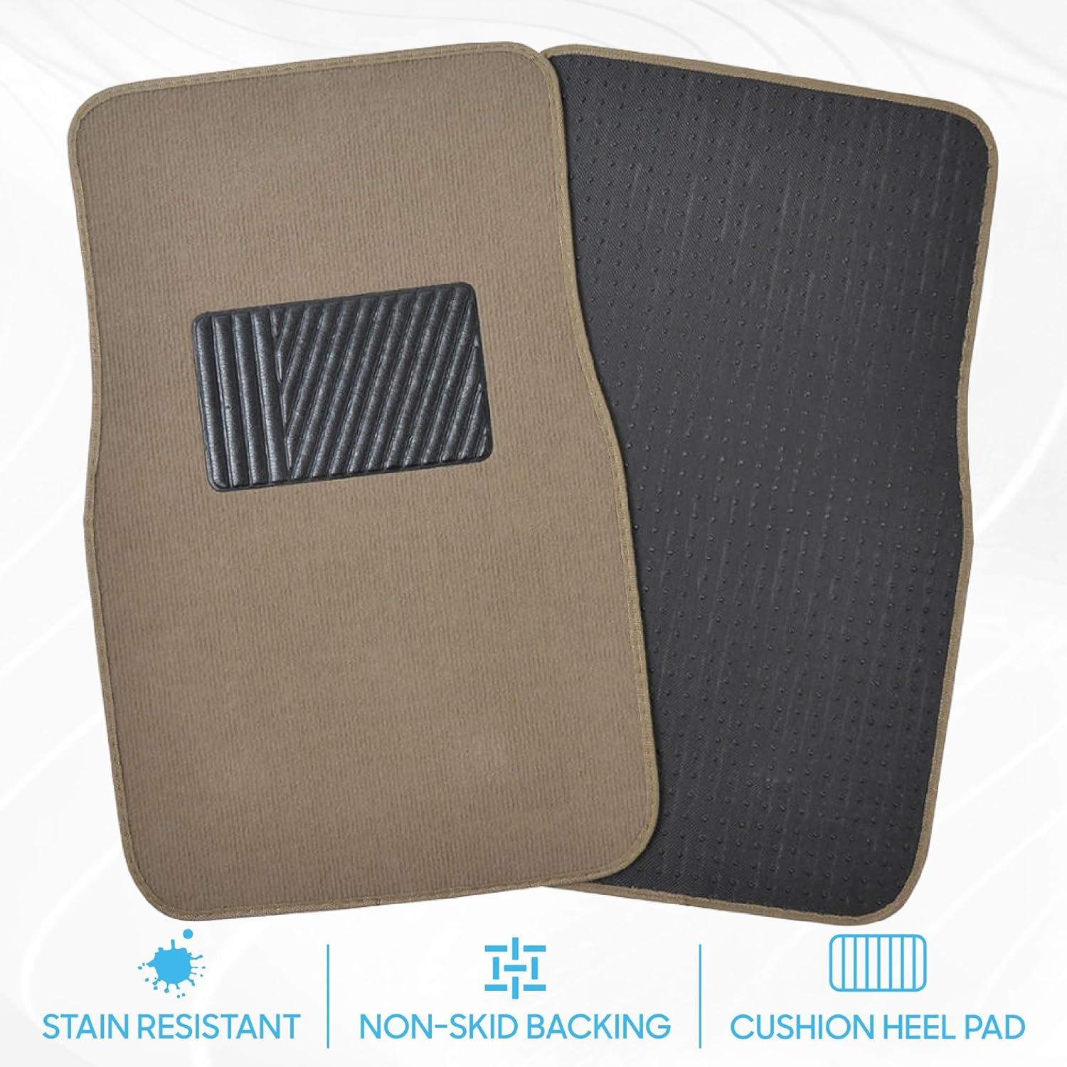 BDK Premium Medium Gray Carpet Floor Mats for Cars – Universal Fit Interior 4-Piece Car Mats Full Set with Vinyl Heel Pad Protector – Cute Car Accessories Interior Floor Covers for SUVs & Trucks(Medium Beige)