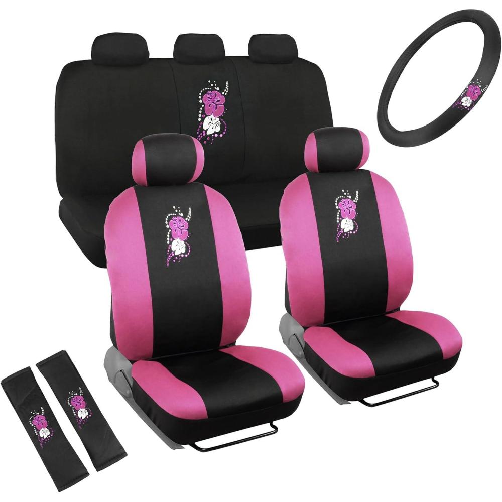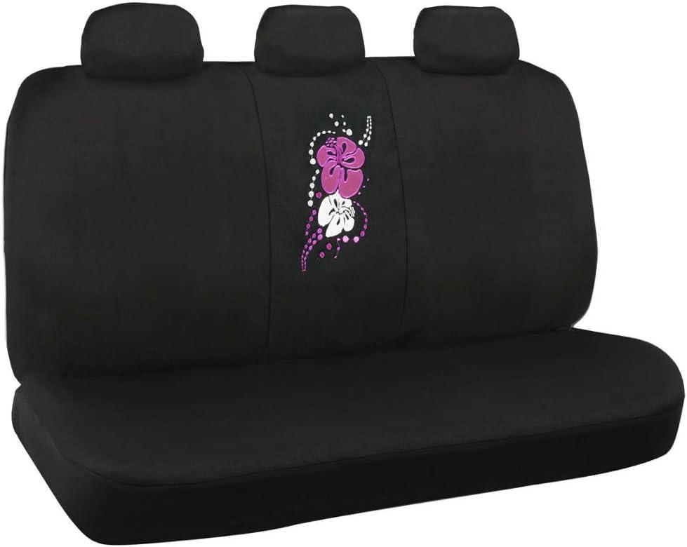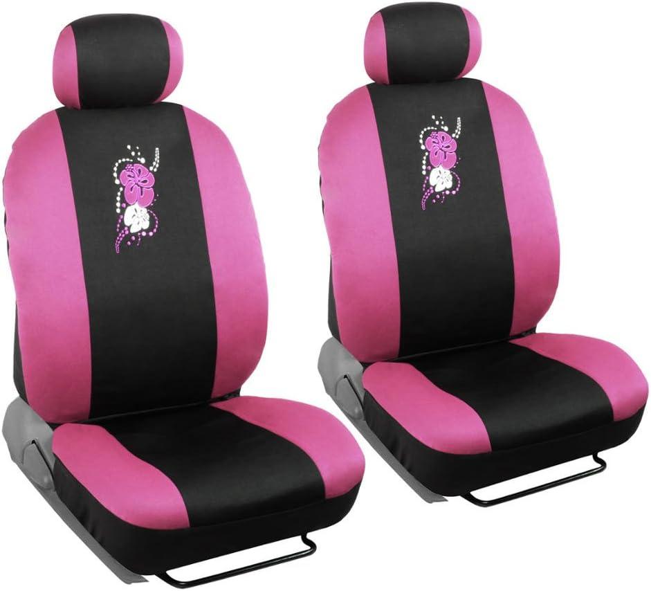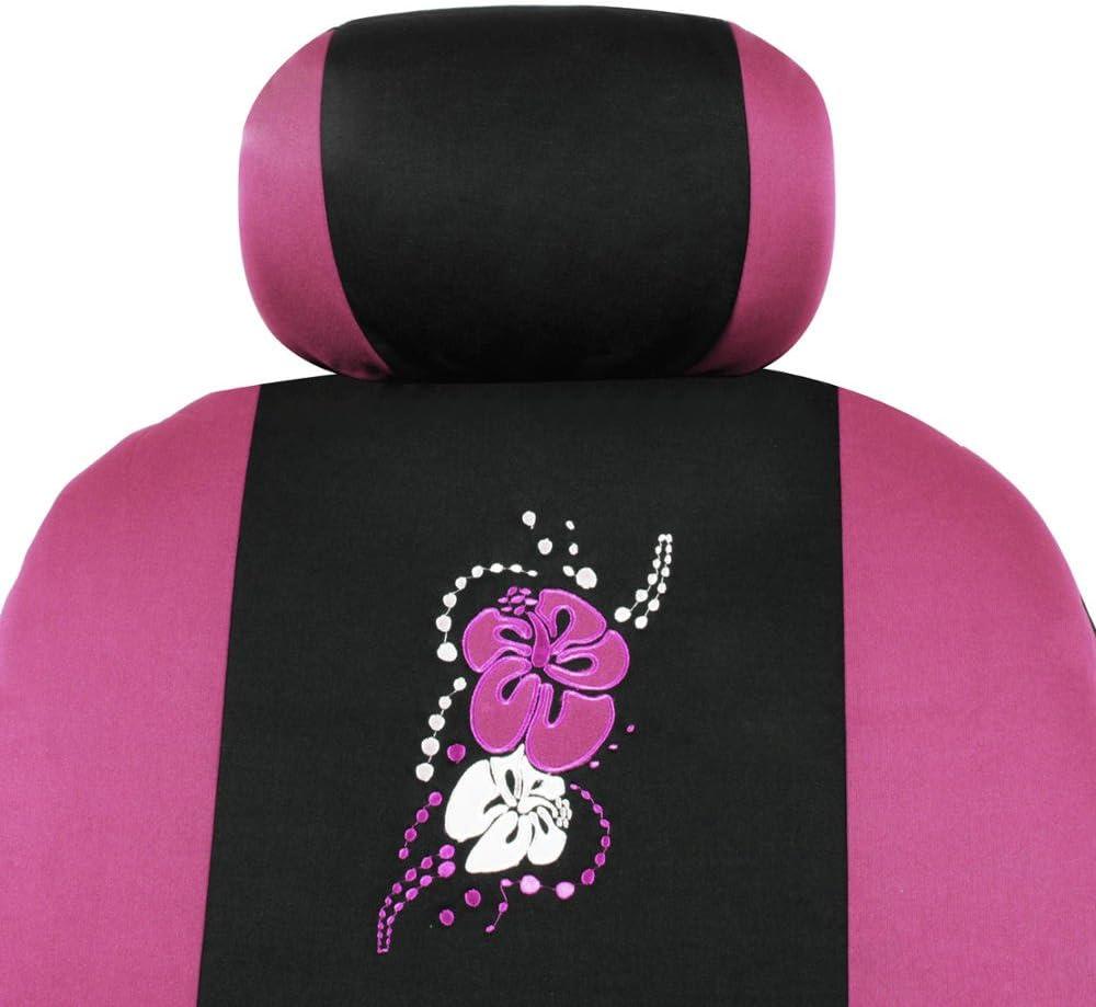 BDK SC-452-BL SC452BL 9 Piece Set Hibiscus Flower Print Design Seat Covers-Fit for Car SUV Van and Truck, Blue Hawaiian(Pink)