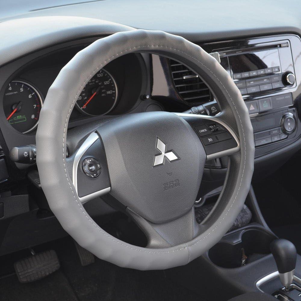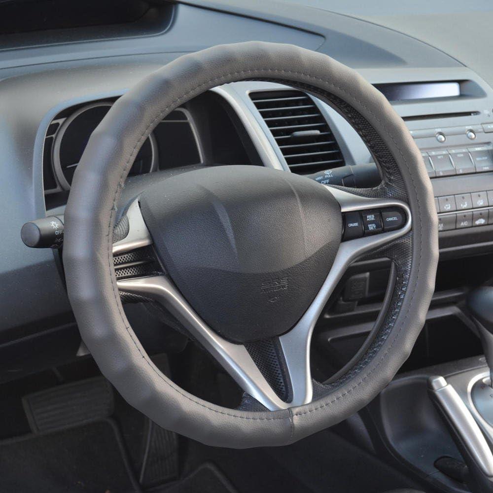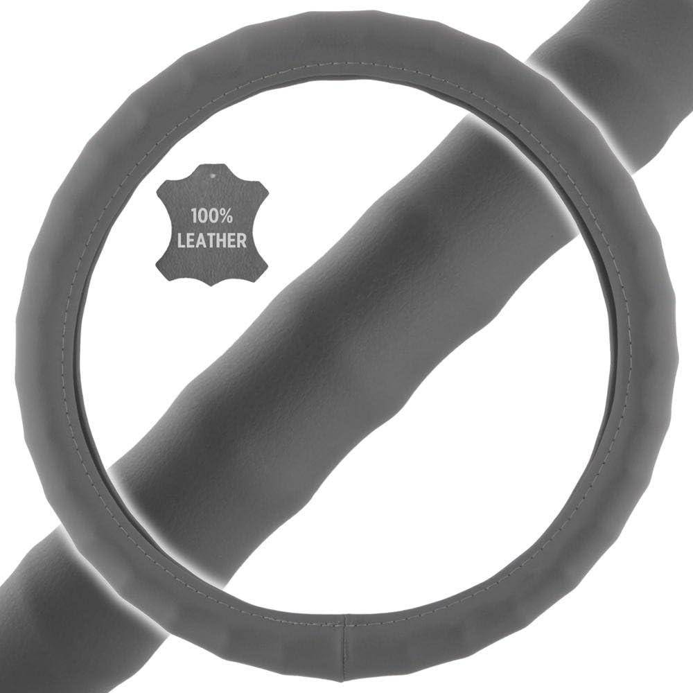 BDK SW-899-MG Genuine Leather Car Steering Wheel Cover 14.5-15 inch Medium/Gray, Easy Installation(Gray)