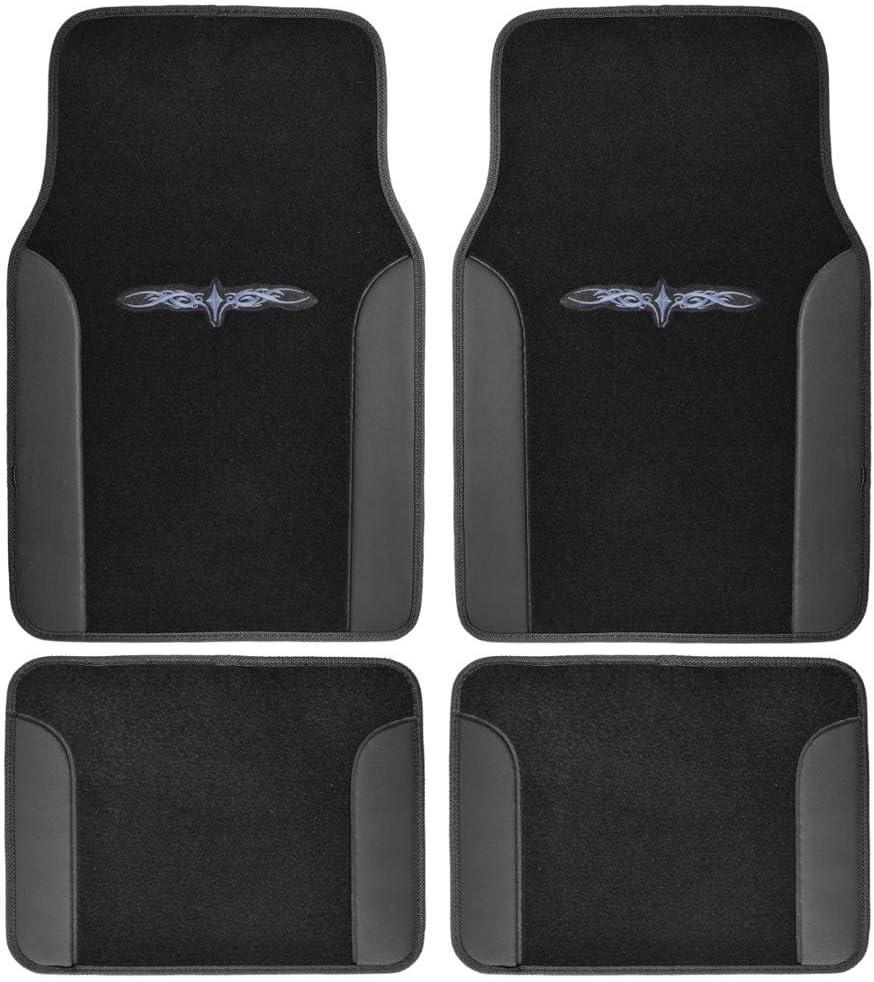 Black & Pink Car Seat Covers w/Split Bench & Light Pink Two Tone Carpet Floor Mats Full Set(Black & Blue)